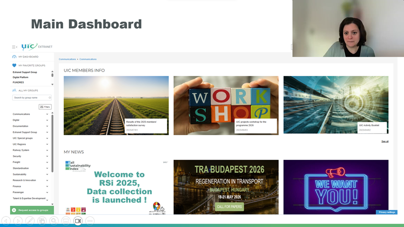 • Chrystal Vavoulidis, UIC Web Content Manager, demonstrated the functionality of the UIC Extranet, describing it as the primary members-only platform. She guided participants through accessing the Members Area, which houses key documents, and explained how to use the Notifications feature to prioritise updates from various working groups. She clarified the different user roles (Reader, Editor, Admin) and detailed the process for members to request access to the groups most relevant to their work, thereby ensuring they can find and utilise all necessary documents and files.