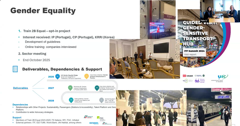 The meeting concluded with a moderated discussion on sustainability in the Asia-Pacific context, featuring Nargiz Samadova, Sustainable Development Manager, Azerbaijan Railways (ADY), and Xin Ling, Deputy Director of Tianyou Railway Institute, Southwest Jiaotong University (SWJTU), represented by Prof. REN Jun.