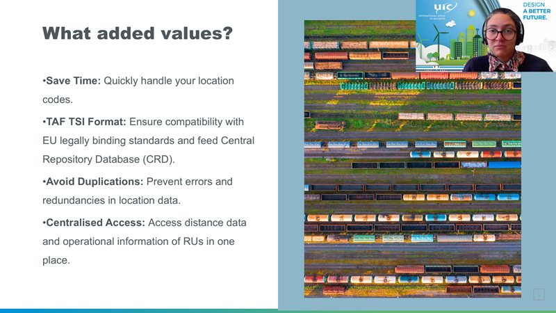 - Atlas: A live master database for location codes, introduced by Ms Bazeghi. It standardises codes for operational points (such as commercial stations and border points) to eliminate fragmented legacy codes and provides key operational information, such as distances for tariff calculation.