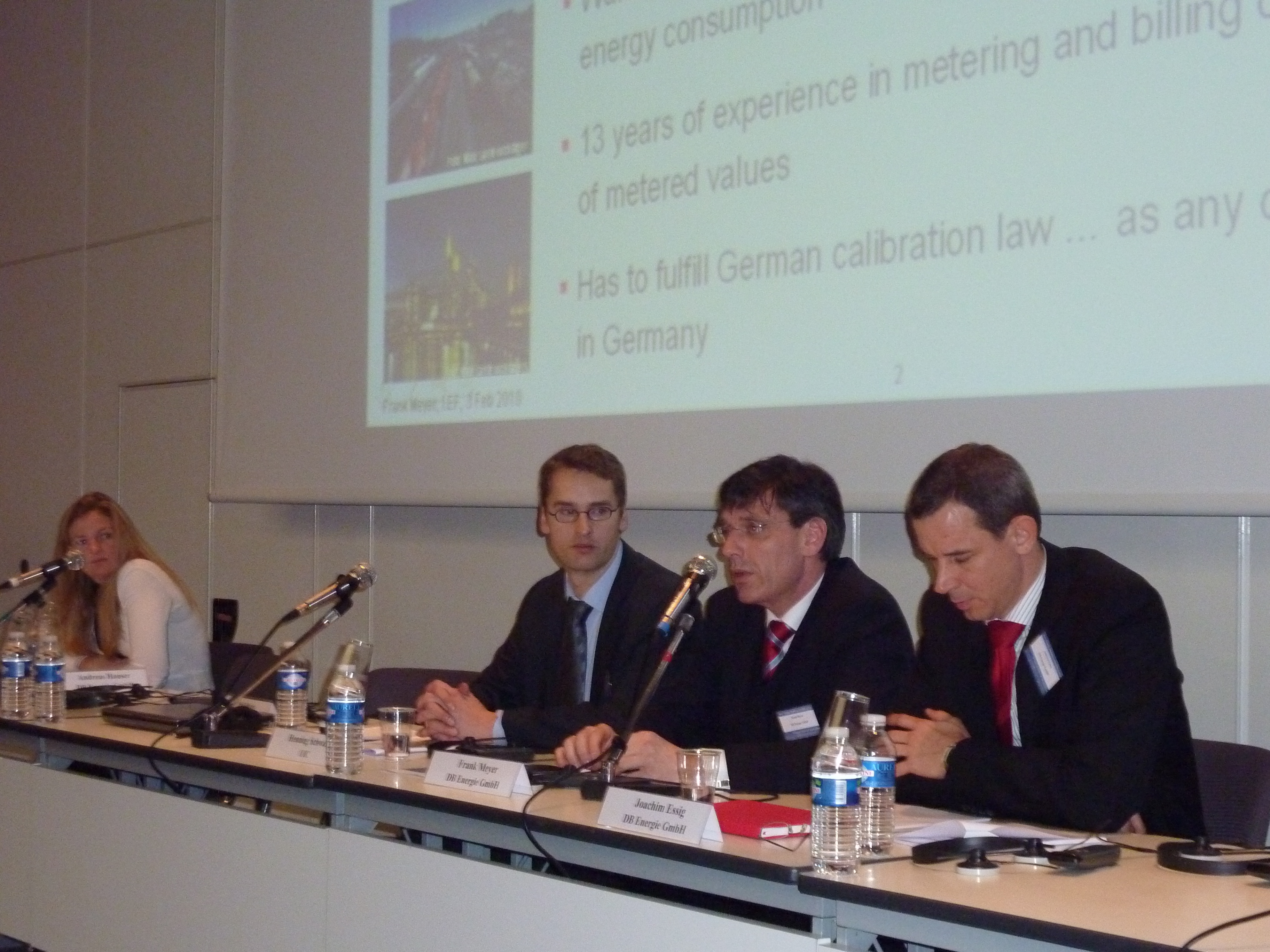 After a presentation of the Energy Billing Project results by Joachim Essig (Head of Billing, DB Energie) three implemented energy settlement systems at DB, RFF (SOCLE) and European Railway Energy Settlement (ERESS) in Scandinavia and Belgium were presented. End of 2010 all three systems will have fully implemented the UIC leaflet 930. From then on cross border traffic can be billed according to the actual consumption.