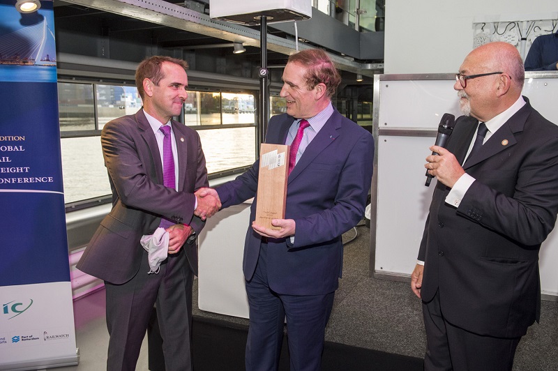 During the gala dinner hosted by the BIC (Bureau International des Containers) on 22 June in Rotterdam, the Netherlands, on the occasion of the 5th UIC Global Rail Freight Conference GRFC, the 2016 BIC Award was presented to Mr Jean-Pierre Loubinoux, Director General of UIC, the worldwide organisation of railways, in recognition of almost 40 years of exemplary leadership in the international railway sector.