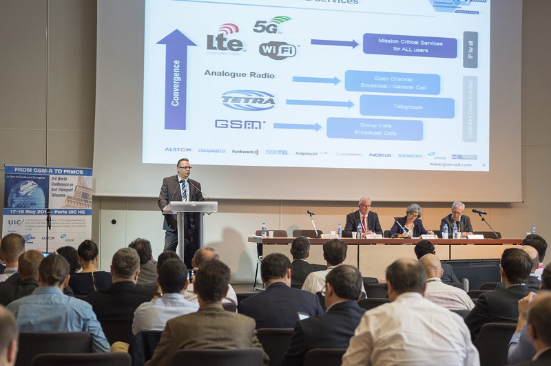 UIC in cooperation with the Railway Operational Communications-Industry Group (ROC-IG, formerly GSMR-IG) organised the Third World Conference on Rail Telecoms, at Paris UIC Headquarters on 17-18 May 2017. The interest was as strong as for the earlier editions with 175 participants from different companies/organisations, and 10 exhibitors: Comtest Wireless, Cybertel, Expandium, Frequentis, Funkwerk, Iskratel, Kapsch Nokia, Siemens and ZTE. The Conference sponsors included TrioRail, Alstom and ROC-IG.